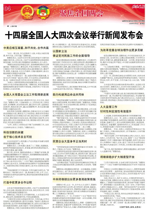 十四届全国人大四次会议举行新闻发布会 大会发言人娄勤俭答记者问   新华社北京3月4日电 十四届全国人大四次会议4日中午举行新闻发布会,大会发言人娄勤俭就会议议程和人大有关工作回答了中外记者提问。