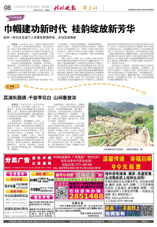 巾帼建功新时代 桂韵绽放新芳华 桂林一批妇女先进个人和集体获国家级、自治区级表彰   本报讯(记者陈娟)近日,桂林妇女群体再传捷报,一批先进个人和集体斩获国家级、自治区级荣誉,彰显了桂林巾帼的责任与担当。过去一年来,桂林广大妇女深入学习贯彻习近平新时代中国特色社会主义思想,贯彻落实党的二十届四中全会精神、全球妇女峰会精神,认真践行习近平总书记关于妇女儿童和妇联工作、注重家庭家教家风建设的重要论述及关于广西工作论述的重要要求,踔厉奋发、勇毅前行。