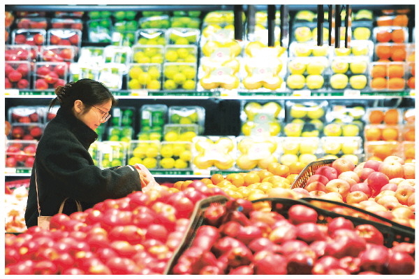 3月9日,消费者在江苏省无锡市一家超市选购水果。 新华社发