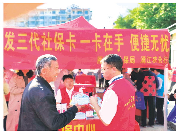 为市民换发三代社保卡,贴心服务送到家。