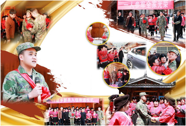 3月12日,龙胜各族自治县江底乡建新村矮岭组红瑶聚居寨里欢声与热泪交织,乡亲们身着红瑶盛装,以寨里最隆重的仪式,欢送乡里今年上半年唯一一名新兵杨小弟入伍。