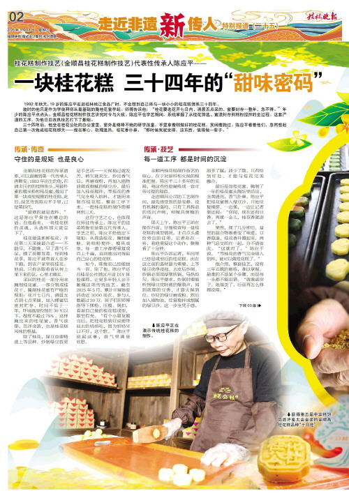 桂花糕制作技艺(金顺昌桂花糕制作技艺)代表性传承人陈应平—— 一块桂花糕 三十四年的“甜味密码”   上接02版
