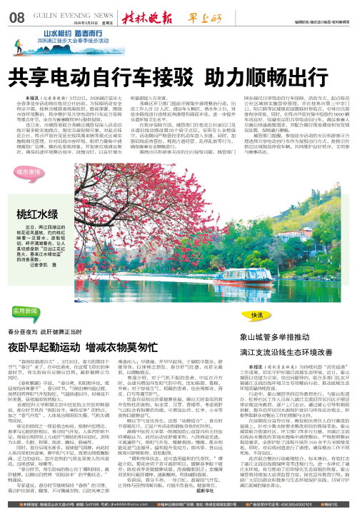 本报讯(记者唐健扬)3月22日,2026漓江徒步大会春季徒步活动将在桂花公社启动。为保障活动安全有序开展,桂林市城管委统筹组织、提前部署,围绕市容环境整治、秩序维护及共享电动自行车运力保障等重点环节,全力为赛事顺利举行提供保障。