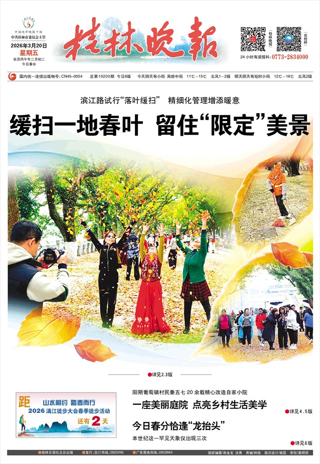 短短十几天的春日落叶景致,在市民与管理部门的相互理解、默契配合下得以留存,既守护了自然诗意,也兼顾了市民需求,让桂林的山水风光更具温度和情怀。