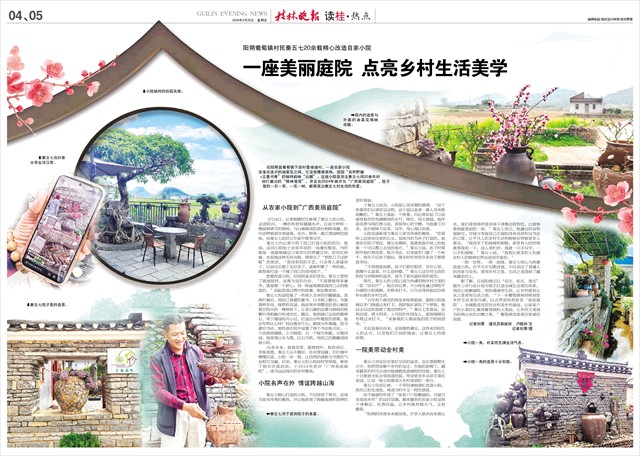阳朔葡萄镇村民秦五七20余载精心改造自家小院 一座美丽庭院 点亮乡村生活美学   在阳朔县葡萄镇下岩村委禄迪村,一座农家小院坐落在连片的油菜花之间,它没有雕梁画栋,却因“自然野趣+文墨书香”的独特韵味“出圈”。这座小院是房主秦五七用20多年时间打磨出的“精神港湾”,并且在2024年被评为“广西美丽庭院”。院子里的一石一草,一花一树,都展现出秦五七对生活的热爱。