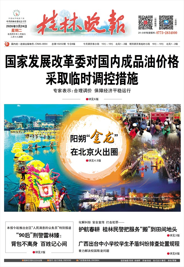 跨越千里 桂林山水间的非遗民俗进京巡演 阳朔“金龙”邂逅京城春夜   3月20日和22日,桂林非遗民俗项目阳朔“金龙巡游”在北京开展两场巡演,从海淀区的古运河到朝阳区亮马河,一场串联古今文脉、联动南北的非遗展演,在北京火爆出圈。