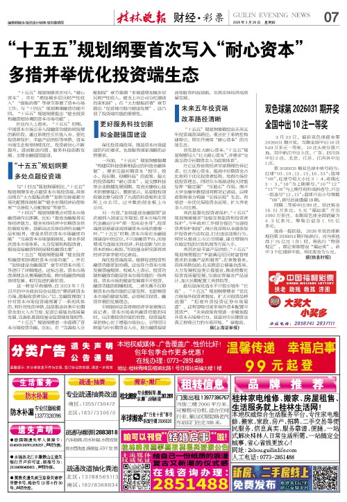 多措并举优化投资端生态   “十五五”规划纲要首次写入“耐心资本”,并在“增加城乡居民财产性收入”“提振消费”等章节部署了资本市场工作。与“十四五”规划侧重融资功能不同,“十五五”规划纲要提出“健全投资和融资相协调的资本市场功能”。