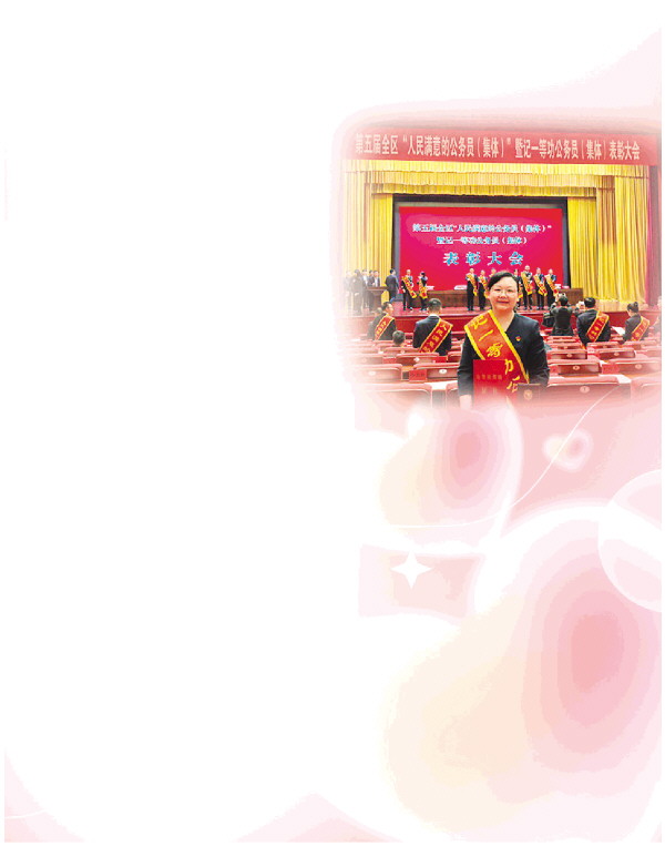 ↑张玲参加第五届全区“人民满意的公务员(集体)”暨记一等功公务员(集体)表彰大会。