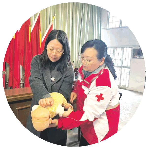 →红十字应急救护“进乡村”活动中,张玲为乡镇机关干部开展公益培训。