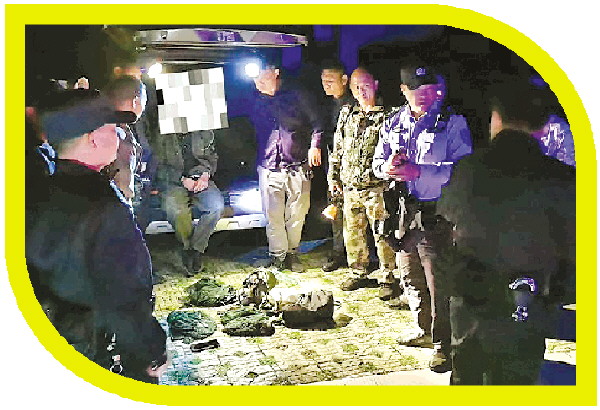 保护区管护员开展反盗猎行动,抓捕盗猎者。