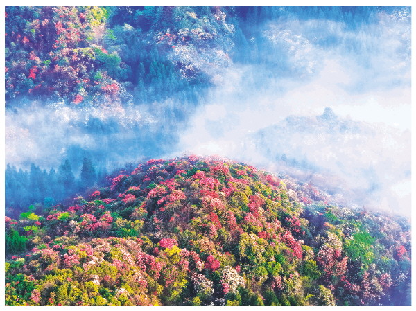 近日,贵州省毕节市百里杜鹃管理区内的杜鹃花迎来盛花期。