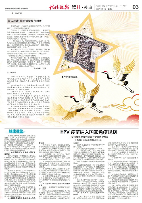 □蒋述香(桂林市疾病预防控制中心)   宫颈癌,是严重威胁女性健康的恶性肿瘤之一,而人乳头瘤病毒(HPV)感染,是导致宫颈癌发生的首要病因。长期以来,HPV疫苗作为预防宫颈癌最有效的手段,却因自费接种让部分家庭望而却步。如今,这一局面迎来重大改变——2025年11月10日,我国正式将HPV疫苗纳入国家免疫规划,开启适龄女孩免费接种,这是守护万千女性健康的重要举措。
