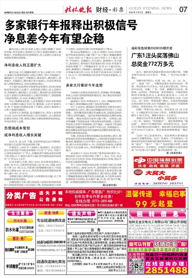 净息差今年有望企稳   截至目前,已有20余家A股上市银行披露了2025年年报,其中包括6家国有大行和9家股份制银行。数据显示,尽管净息差仍在持续收窄,但上述银行正逐步走出营收负增长的困境。
