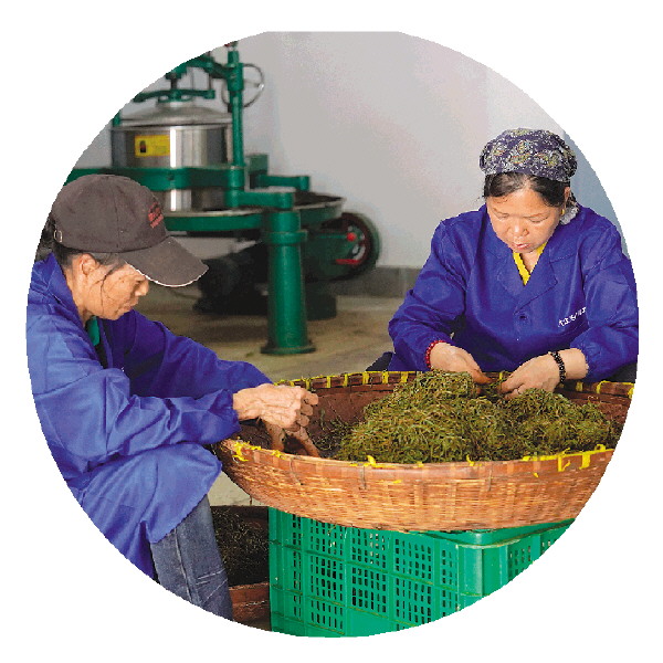 “我们采茶熟练的一天能挣300多元,平时还能在茶场做管护工作,一年下来收入有1.5万元。”平安镇大江村村民余爱琼笑着说。另一边,采茶的忙碌延伸至加工环节,步行至山下,茶叶加工厂内机器轰鸣,制茶工人加班加点赶制春茶,全力保障市场供应,让新鲜的谷雨茶,快速转化为油茶原料。