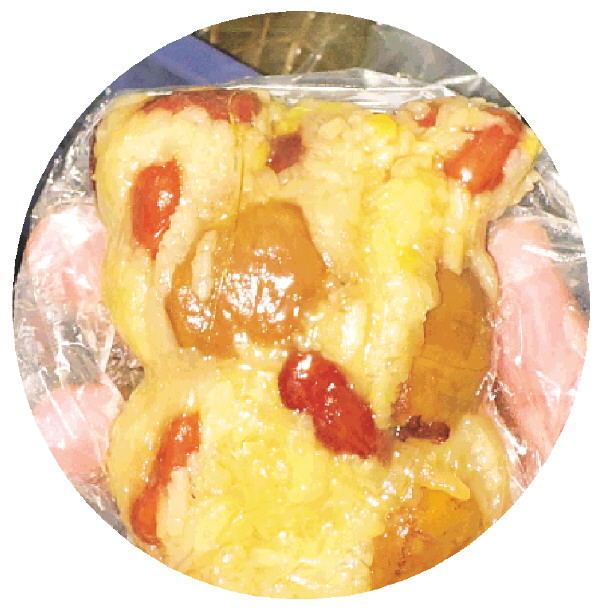 记者品尝了一个五花肉粽,混合绿豆的糯米粒十分软糯,芸豆酥烂可口,板栗香甜,五花肉的肥油早已化开,油脂渗入每颗米粒,入口即化,咸香醇厚,回味绵长。