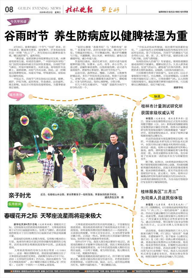 中医认为,谷雨节气养生防病应以祛湿、健脾、疏肝、护阳为纲,起居有度、饮食清淡、运动温和、情志舒畅,如此方可有效防范湿邪致病,为夏季健康奠定基础。