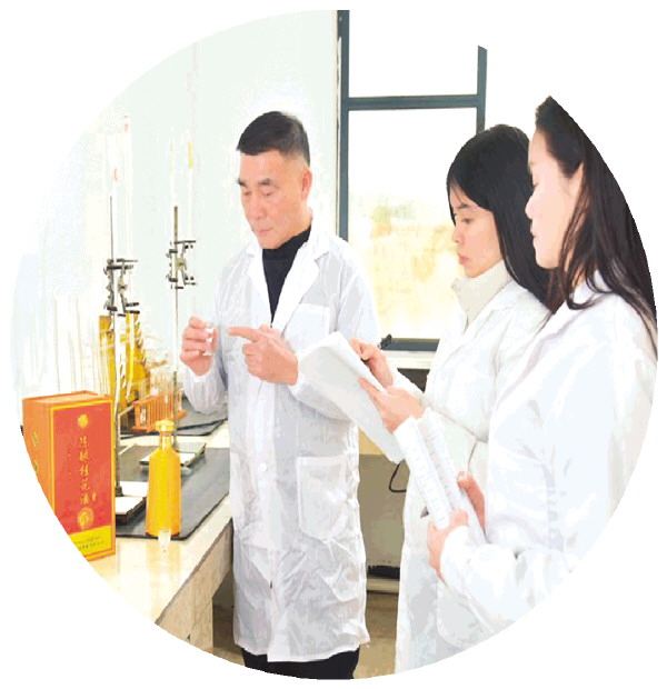 徐文强(左)跟团队一起研发新的桂花酒产品。(受访者供图)