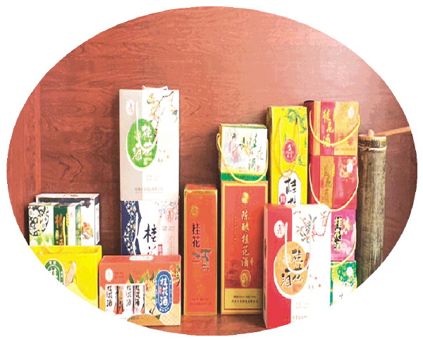 在产品创新上,徐文强不断拓展边界。他不仅在质量把控上精益求精,更针对不同消费需求研发出多样产品,目前已有二三十种桂花酒,酒精度数从8度至53度不等,“不同度数的酒,口感和回味都各有侧重,能满足日常小酌、宴请宾客等不同场景”;同时结合桂林本地特色,酿制了百香果酒、罗汉果酒等,全品类酒品达100余种,给消费者提供了丰富多元的选择。包装设计上,他巧妙融入桂林山水文化,采用陶罐、竹筒等极具地方特色的容器,部分容器上还绘制了漓江山水、象鼻山等桂林标志性图案,让酒品既是饮品,也是承载桂林文化的文创产品。