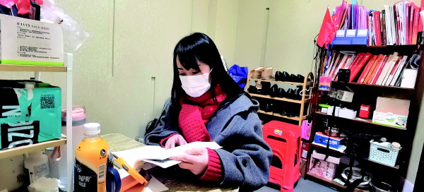 闲暇时,胡雅馨会阅读和背诵历史资料。记者刘净伶 摄