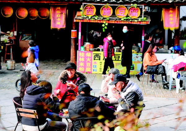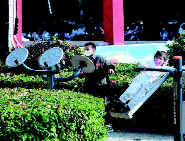 这两天,桂林天气晴好,腊月里的冬日处处充满阳光,人们纷纷来到户外,乐享幸福时光。