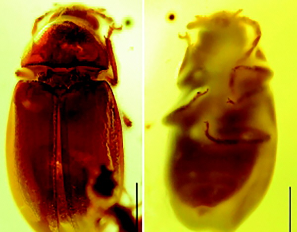 还有一只“趾翅甲虫”,曾被保存在一块来自于乌克兰的琥珀中,距今约3500万年形成了化石。该物种至今仍在热带和亚热带地区生活。化石表明,在它活着的时候,乌克兰的气候一定要比现在温暖得多。