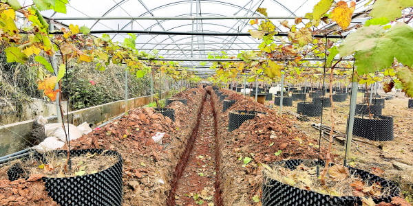 新的大棚和种植的葡萄。