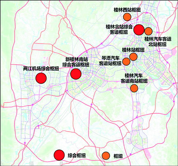 桂林市综合交通运输发展“十四五”规划中,桂林市中心城区客运枢纽总体布局示意图。(资料图片)