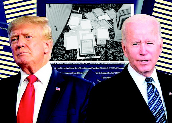 按照美国媒体此前的消息,特朗普和拜登都将参加2024年总统大选。特朗普已宣布了参选计划,拜登计划在2月的国情咨文后官宣这个消息。目前,两位即将在2024总统大选中再度“狭路相逢”的对手,都陷入了同样的麻烦。