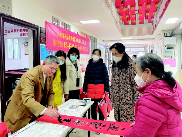 春节前,秀峰区百梓社区开展“文化惠民 喜迎新春”系列活动,邀请非遗传人和书法名家为辖区居民写春联。