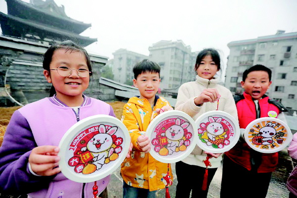 春节前夕,秀峰区解东社区新时代文明实践站组织社区居民开展“我们的节日——春节”手工制作文化体验活动,制作“兔年迎福”“前兔无量”等作品喜迎新春。 记者滕嘉 摄