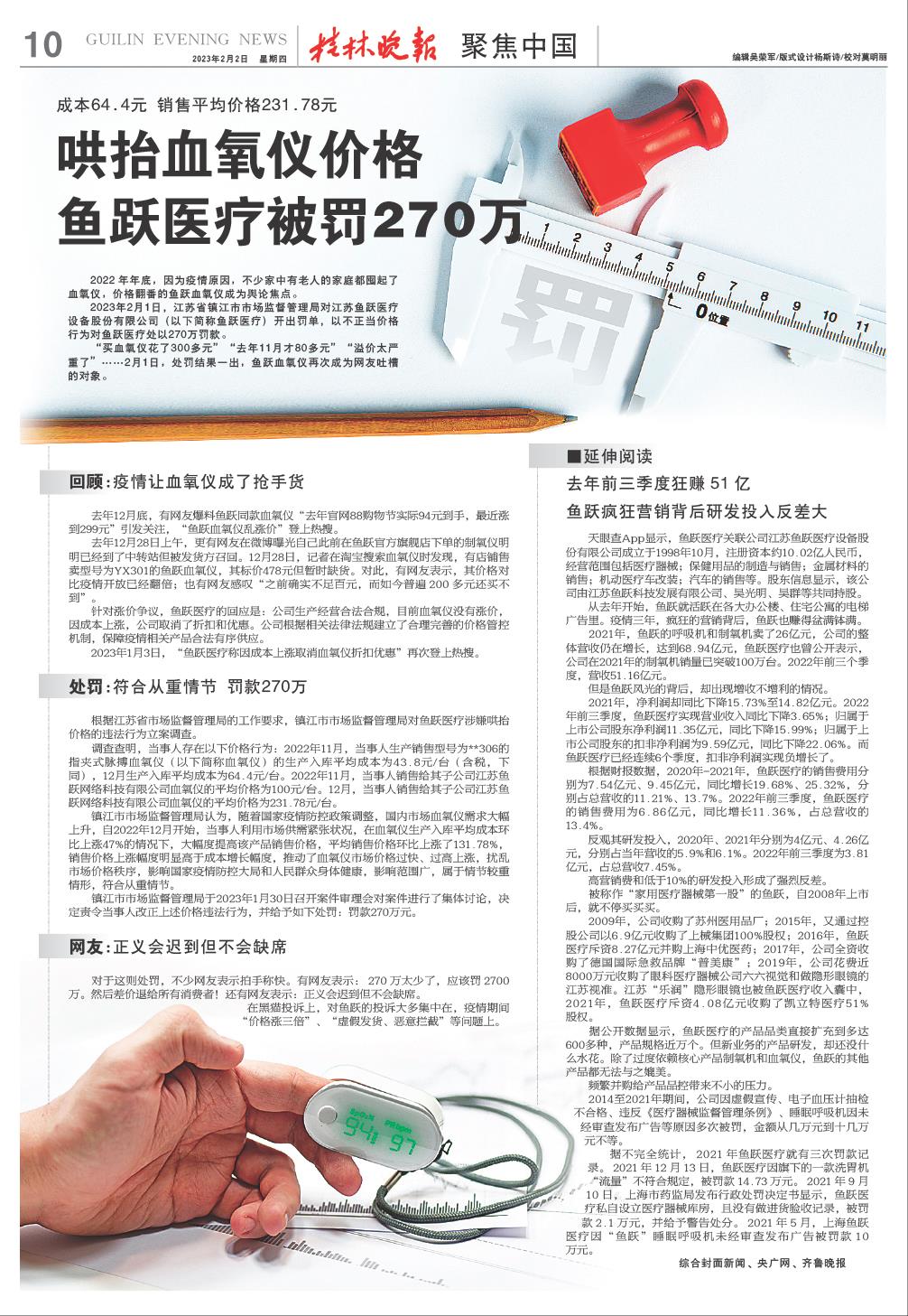 哄抬血氧仪价格