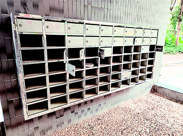 南宁市宏达路一小区内的信报箱箱门已经破损。