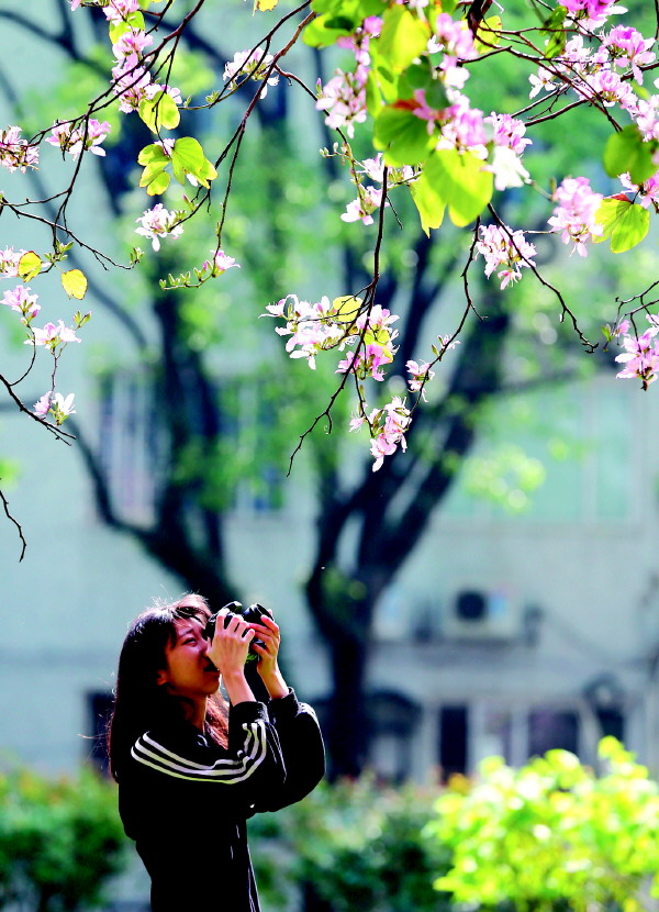 韦毅刚还说,如果以人为主题,花只是照片中的陪衬部分,那在对焦时要对准拍摄人物,保证人物清晰度的同时,最好能通过抓拍,定格人物最放松、愉悦的时刻。“如果现场有很多人,并非只有大家都去拍照的那棵树或那朵花能拍,不妨走到人少的角落,多花点心思选择角度,照样能有好照片。”