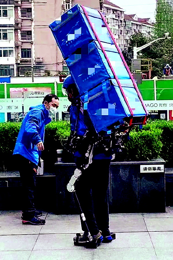2020年,有网友拍到某外卖平台骑手穿着外骨骼送外卖的照片,被网络疯传。照片中骑手能身背数个外卖箱自如行走,靠的就是傲鲨智能自主研发的外骨骼机器人。此事过后,一直默默做研发创新的傲鲨智能才逐渐出现在大众视野。同时,国内多个航空公司也为了应对行李搬运对工人健康的影响,使用上了傲鲨智能研发的外骨骼机器人。