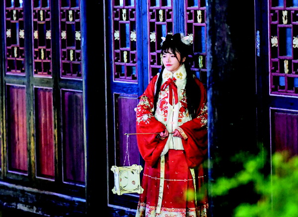 近日,在东西巷里,一女子穿着汉服在古色古香的木门前拍照。层楼叠院、高脊飞檐……东西巷重现了老桂林的建筑风貌,吸引了众多汉服“发烧友”前来打卡。记者滕嘉 摄