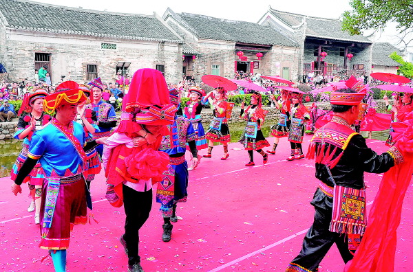 瑶乡群众展示婚礼习俗。
