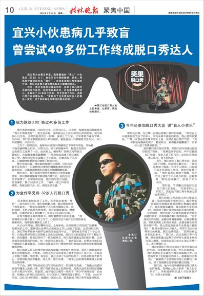 今年还参加脱口秀大会 讲“盲人小欢乐”