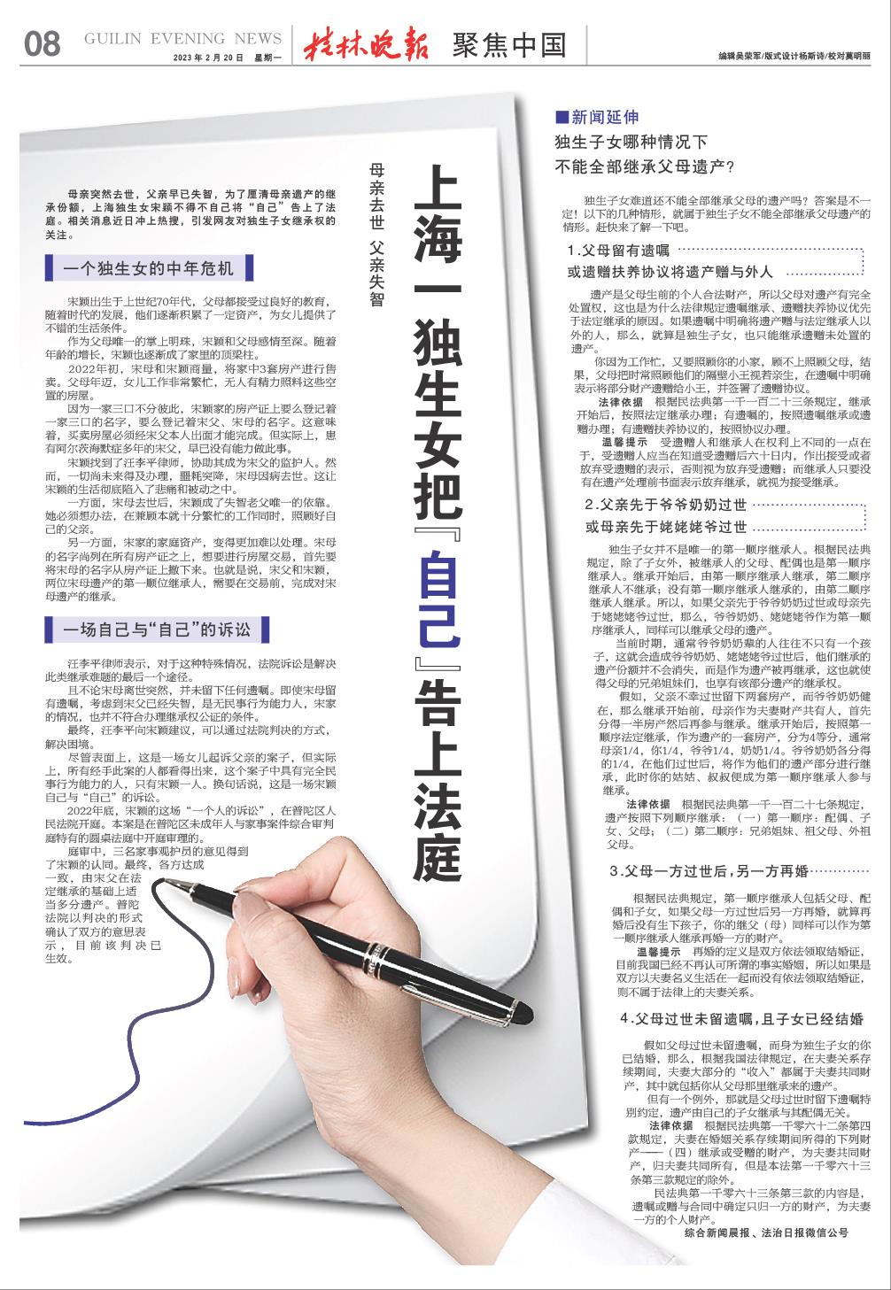 上海一独生女把“自己”告上法庭