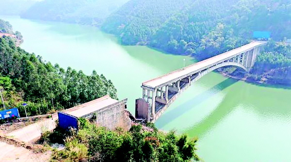 据现场初步调查显示,步头大桥步头端桥台前墙及部分侧墙和第一孔桥面系发生了倒塌破坏,导致交通中断。步头大桥为钢筋混凝土箱型拱桥,桥台为浆砌片石桥台,桥面系为预制混凝土空心板,钢筋混凝土立柱。桥台前墙及部分侧墙从拱座顶面以上部分全部倒塌,第一孔桥面系整体掉落,其他桥面系、拱座、主拱圈等结构的具体情况需要进一步检测分析。