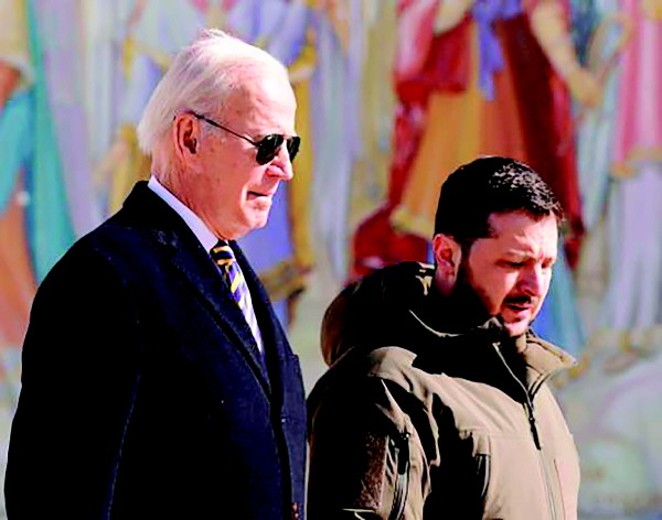 20日,乌克兰基辅,拜登与泽连斯基站在一起。(图源:环球网)