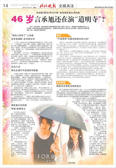 也有迷妹认为:“《夏花》里的言承旭完全看不出40岁了,他是瞒着大家偷偷参加了满40减20活动吗?我小时候他长这样,现在他还长这样。”“受不了20岁年龄差,但对言承旭可以双标。”