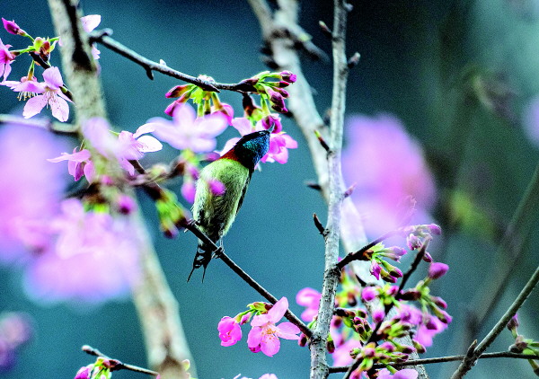 南溪山公园樱花绽放,鸟儿也来赶赴浪漫之约。记者滕嘉 摄