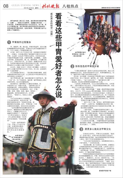 不少甲胄爱好者表示,“我们现在所做的事情,就是希望复原甲胄并展示出来,让它背后的中华优秀传统文化再次回到世人的视线中”。