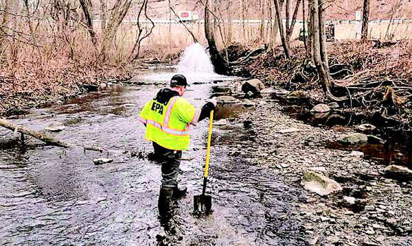 美环境保护署工作人员在检查水体受污染情况。