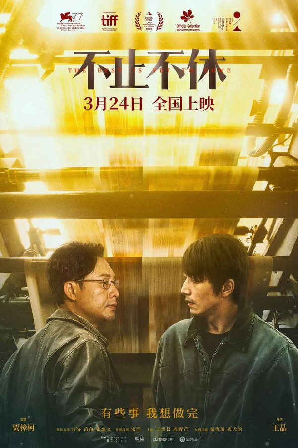《不止不休》由贾樟柯监制,白客、张颂文主演。影片根据真实人物经历改编,将视角聚焦在21世纪初北漂洪流中的小人物,借主人公韩东的经历,呈现出一段关于选择和相信的励志故事。片中,不仅展现了实习记者的成长历程,亦展现了媒体人用笔触记录着时代洪流中的真实故事。