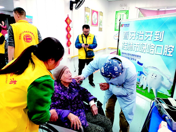 清风社区也将节日的温暖锁定了老年群体。8日上午,叠彩区民政局联合清风社区、呀哈口腔医院走进叠彩区老年公寓开展一系列志愿服务活动。