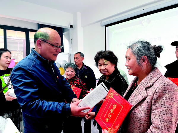 在春江社区,巾帼志愿者获得表彰。通讯员邱林秀 摄