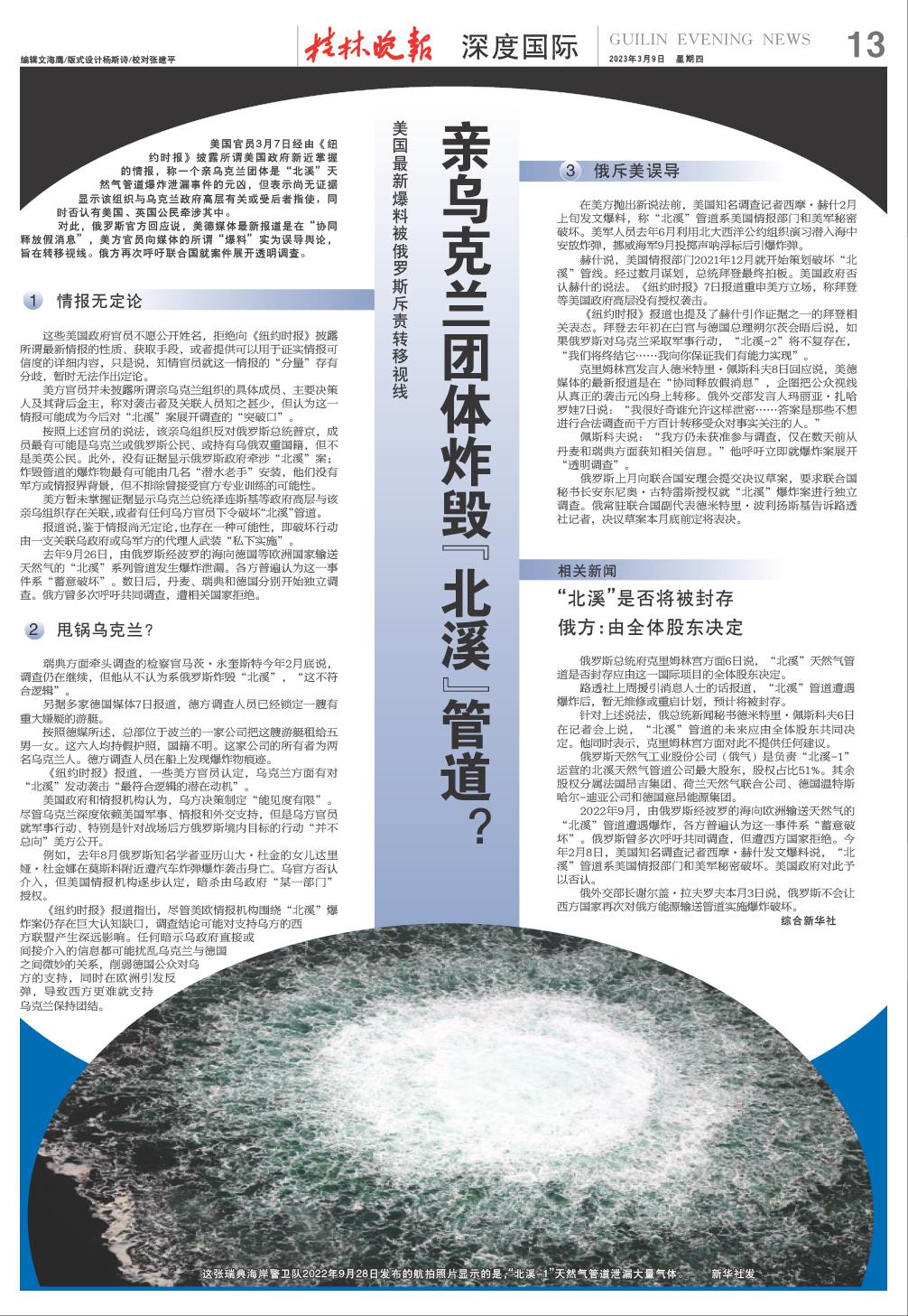 《纽约时报》报道,一些美方官员认定,乌克兰方面有对“北溪”发动袭击“最符合逻辑的潜在动机”。