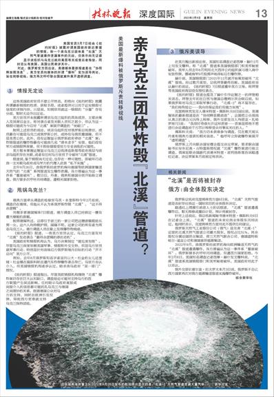 报道说,鉴于情报尚无定论,也存在一种可能性,即破坏行动由一支关联乌政府或乌军方的代理人武装“私下实施”。