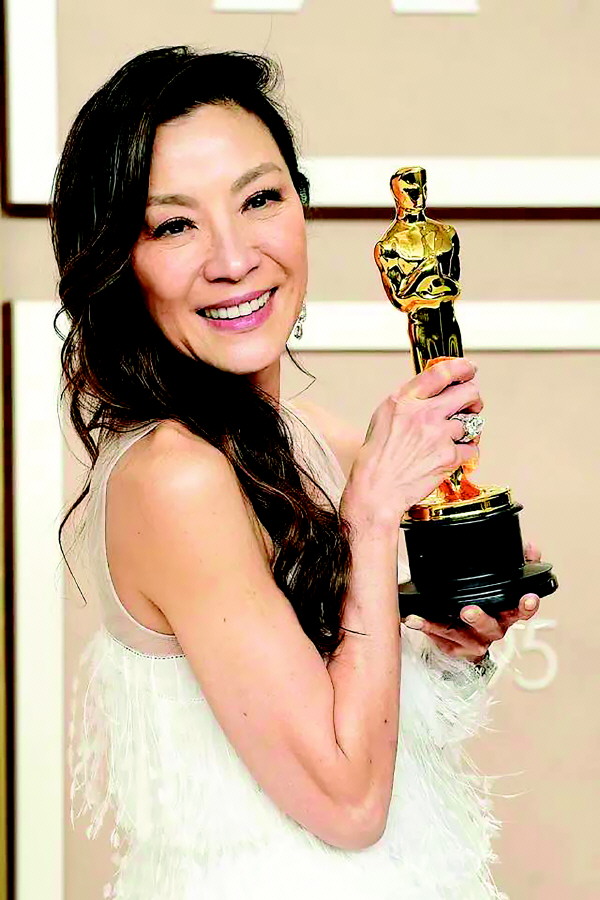 杨紫琼如愿捧起奥斯卡“小金人”。
